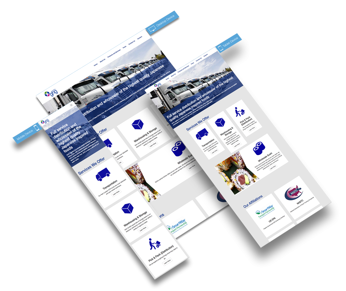 First, I confirmed project requirements and goals. These were considered in the next step, where I chose the correct tools to meet the requirements and timeline. I decided to proceed with the Twitter Bootstrap Framework for rapid layout and development. Before coding, I created a series of responsive wireframes – first hand-drawn and later digitally rendered. These wireframes were used as a base for digital mockups of the proposed site, which incorporated the GHG logistic’s brand look and feel. Once digital mockups were approved, the website was hand coded with HTML, CSS, and Javascript. After checking the website for bugs, the site was launched.